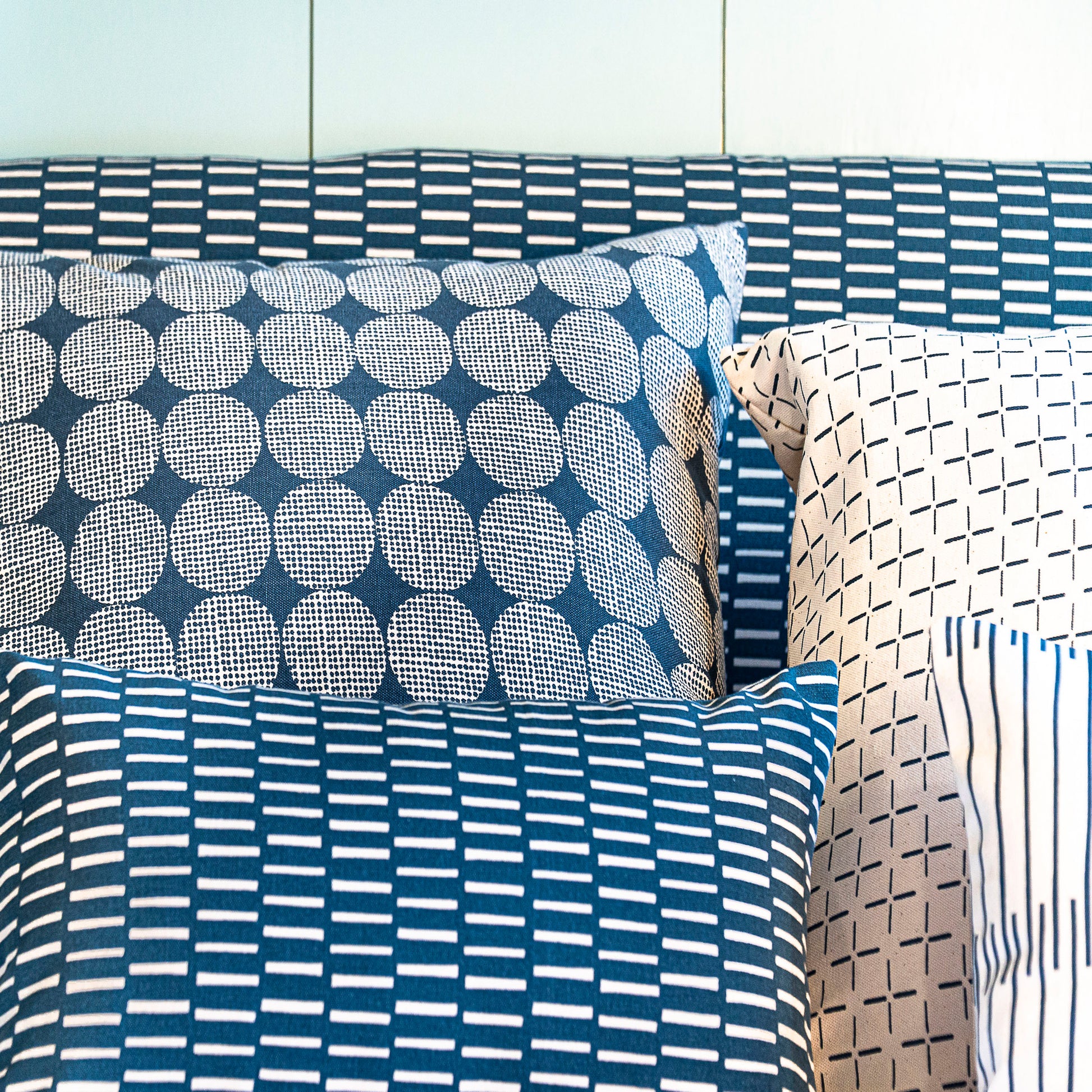 Los almohadones de CUCS están estampados sobre un tejido de algodón grueso pero muy suave al tacto. Al ser la estampación un proceso artesanal, es posible que los almohadones presenten ligeros cambios de tonalidad y en la distribución del estampado, confiriendo al producto un carácter bello y único.