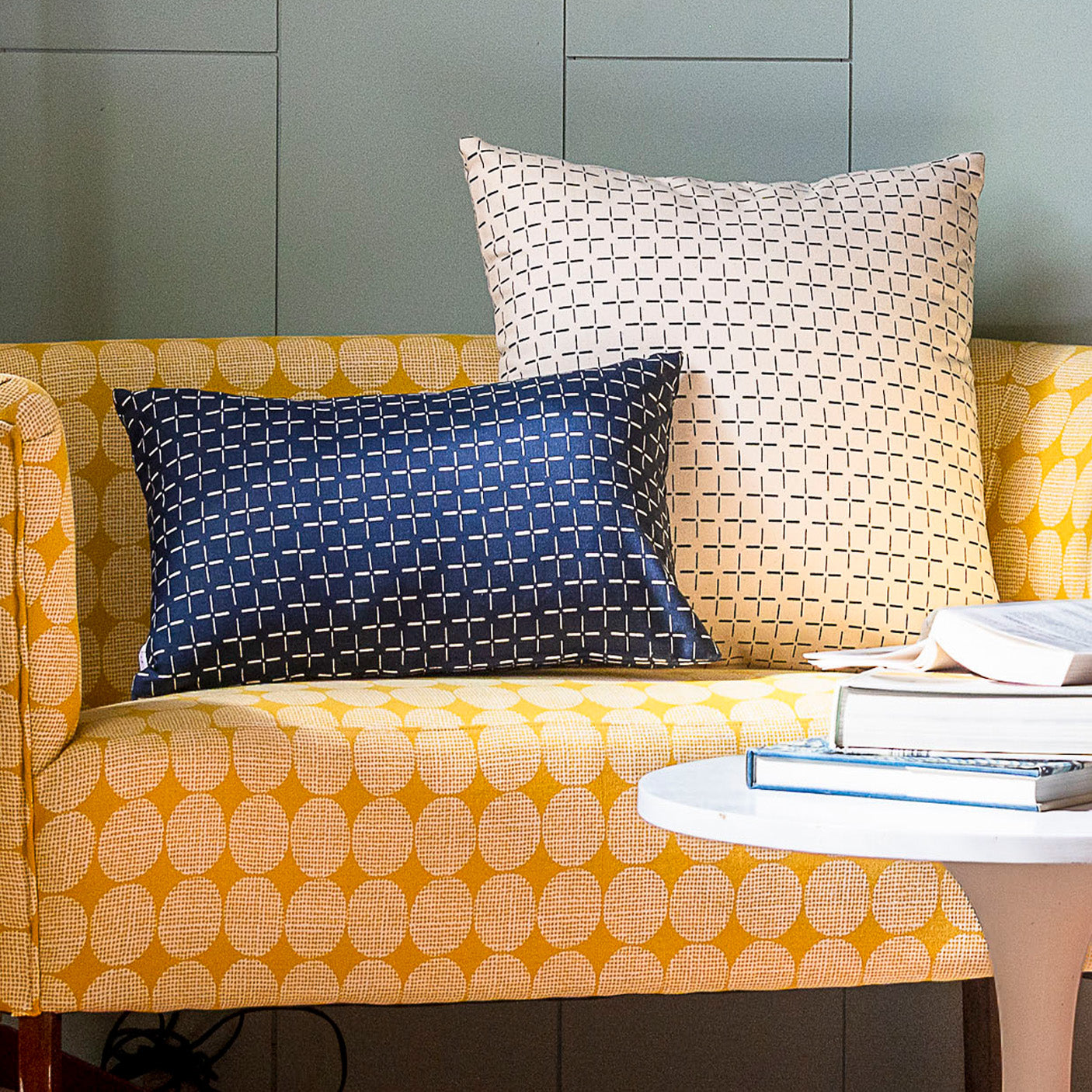 Los almohadones de CUCS están estampados sobre un tejido de algodón grueso pero muy suave al tacto. Al ser la estampación un proceso artesanal, es posible que los almohadones presenten ligeros cambios de tonalidad y en la distribución del estampado, confiriendo al producto un carácter bello y único.