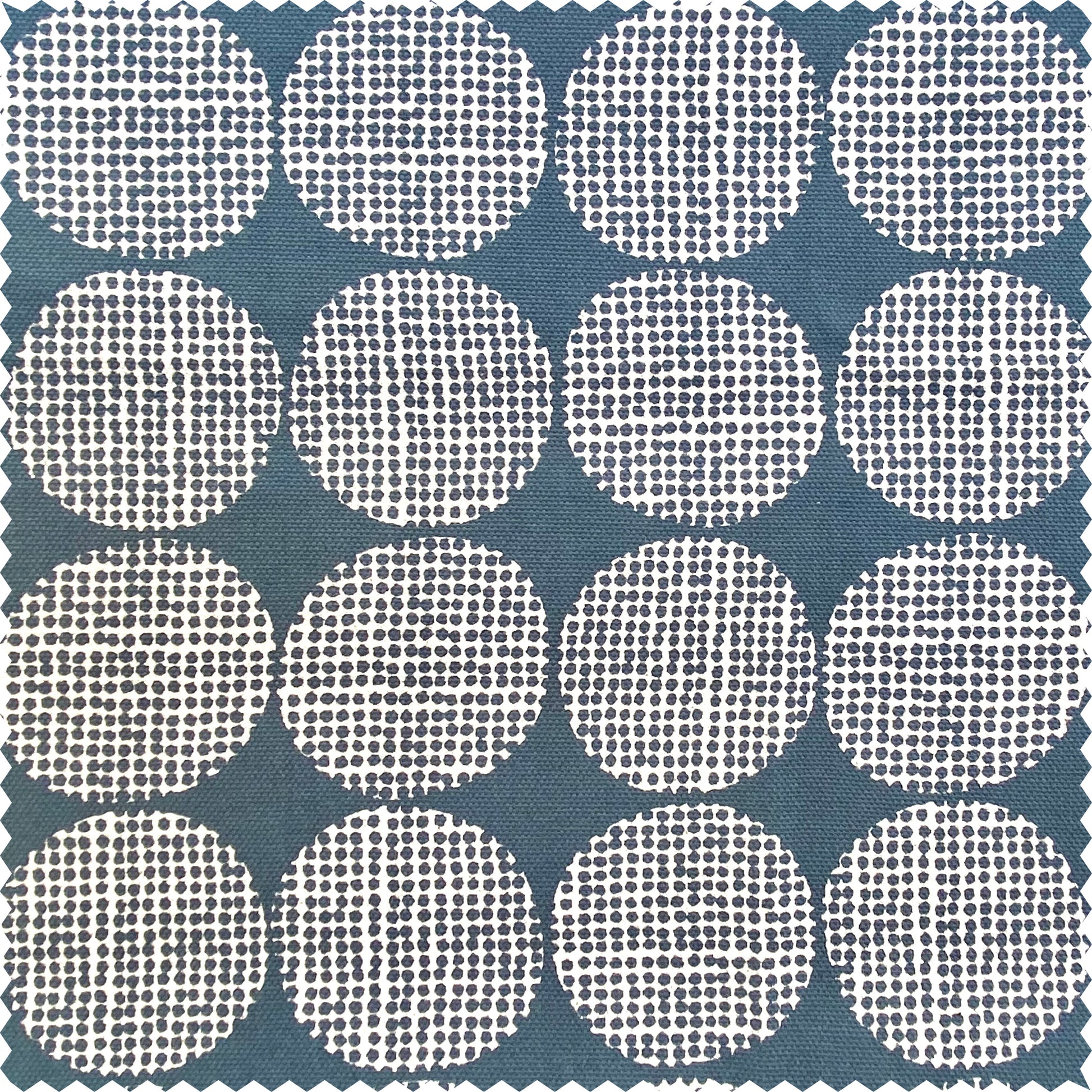 El motivo de la tela Camomila representa las diminutas flores aromáticas en forma de bolita que cubren los campos de Menorca al llegar la primavera, transformándolos en un paisaje único lleno de color y dulce olor.