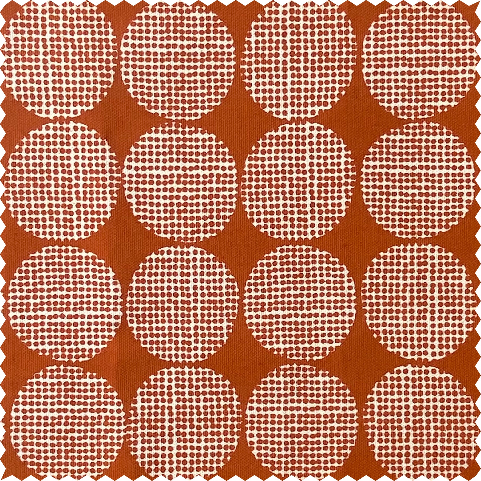 El motivo de la tela Camomila representa las diminutas flores aromáticas en forma de bolita que cubren los campos de Menorca al llegar la primavera, transformándolos en un paisaje único lleno de color y dulce olor.